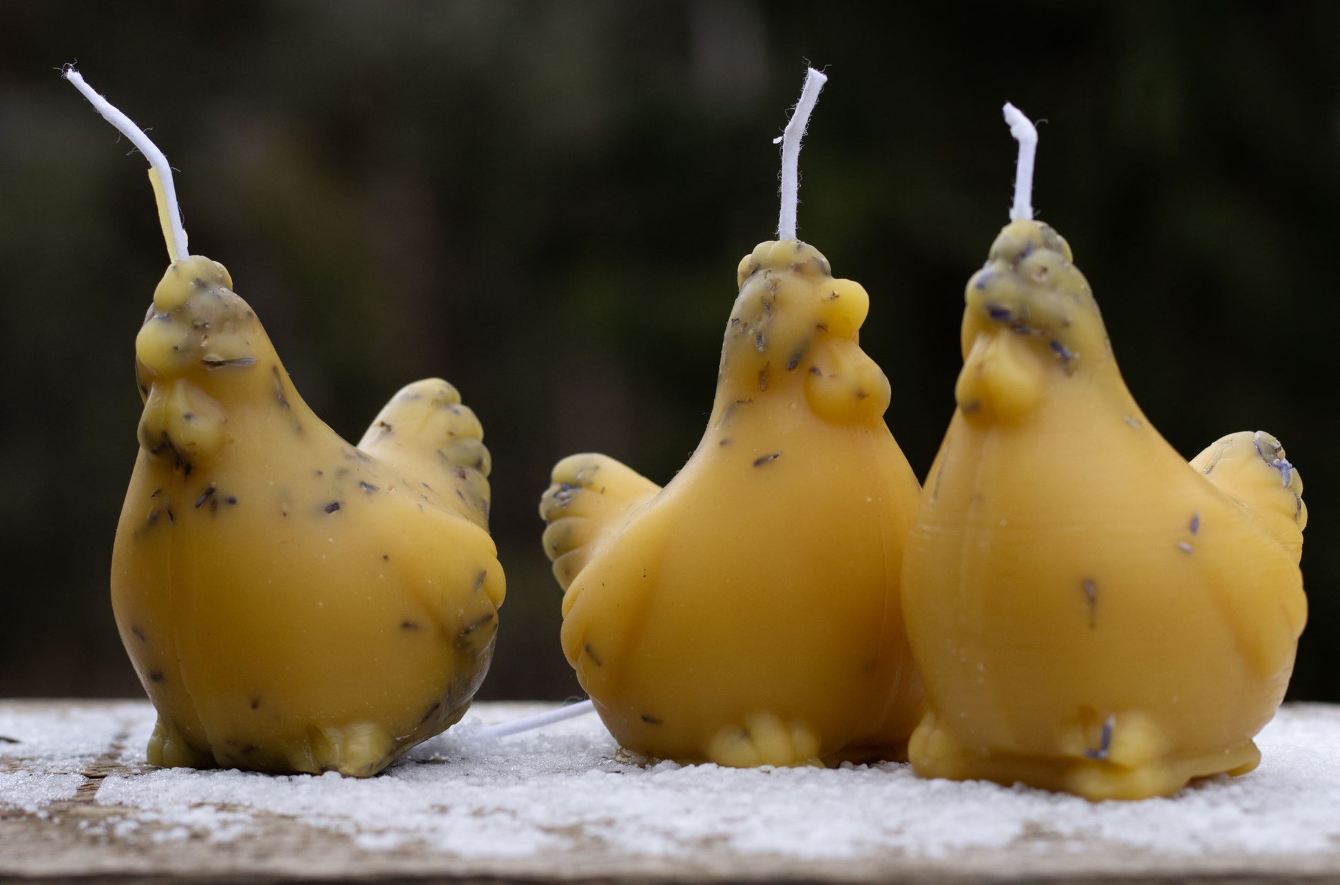 Lavender or Sage infused 100% beeswax CHICKEN Candle. Vermont grown & made!